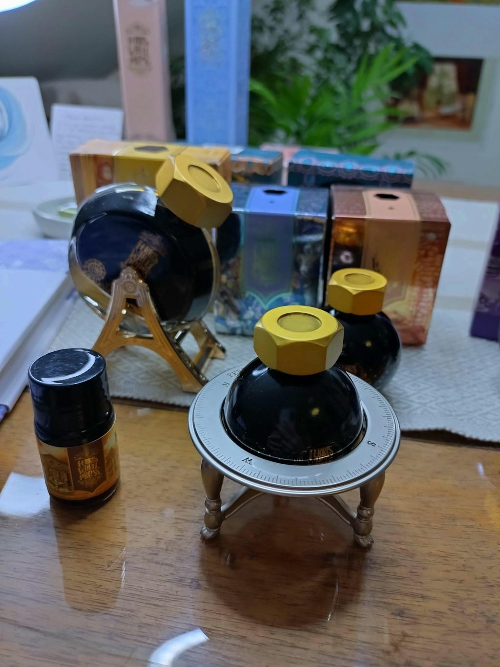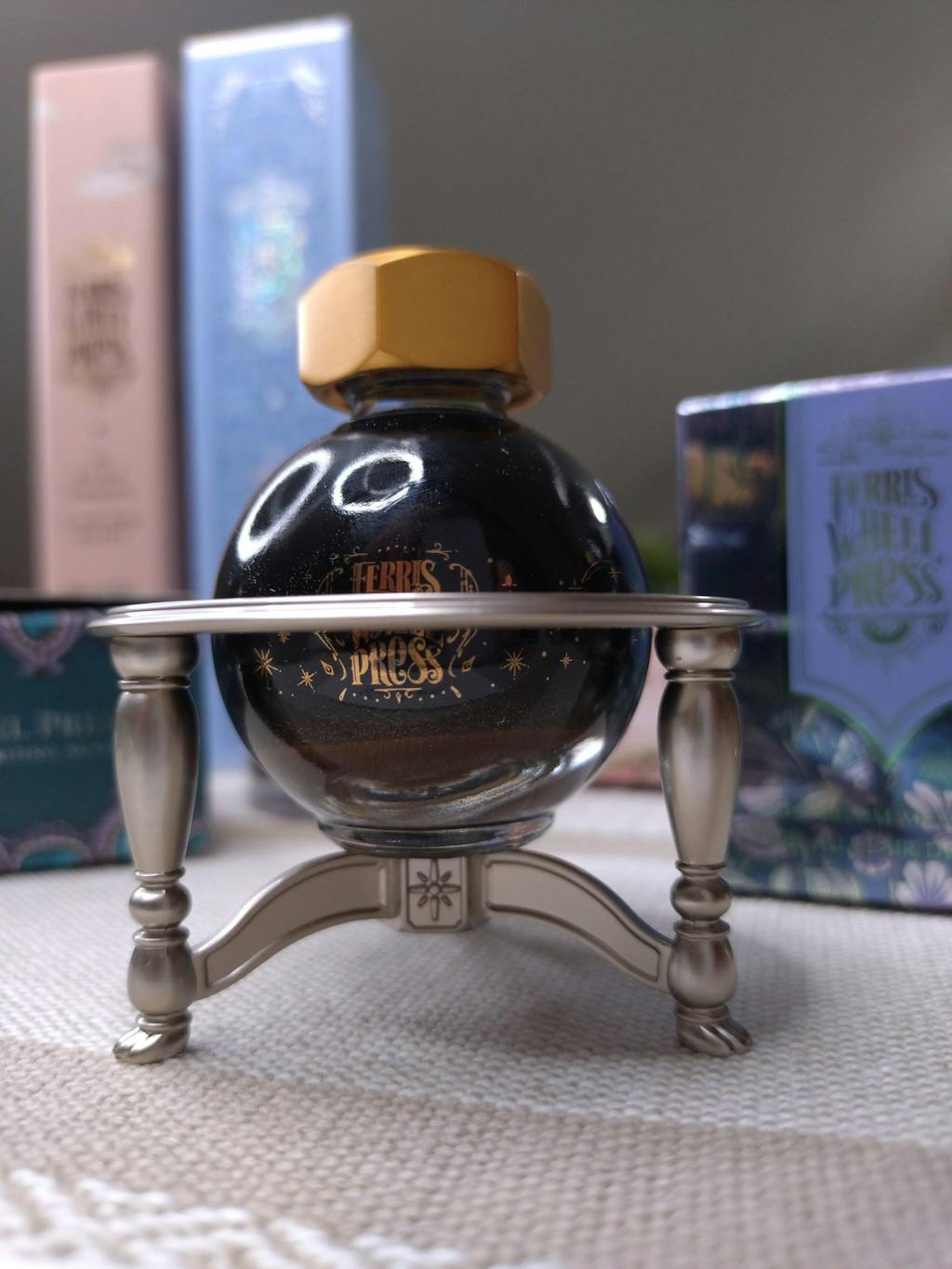 - Provides a stable surface for swirling dormant fountain pen inks