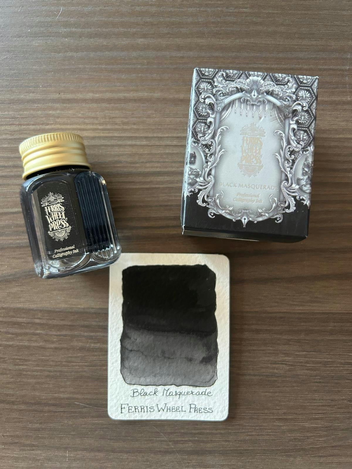 Professional calligraphy ink made for life’s most memorable celebrations. Enter a world of enchantment with an ode to the mysterious allure of a glittering black masquerade ball. Like a moonless night adorned with sparkling jewels, this ink flows as dark as the secrets whispered behind elegant masks. Convey with the essence of extravagant outfits and hidden identities, infusing your words with the charm of clandestine encounters. Whether you're crafting invitations or penning tales, transport to the realm of opulence and unveil the magic of the masquerade with every stroke.