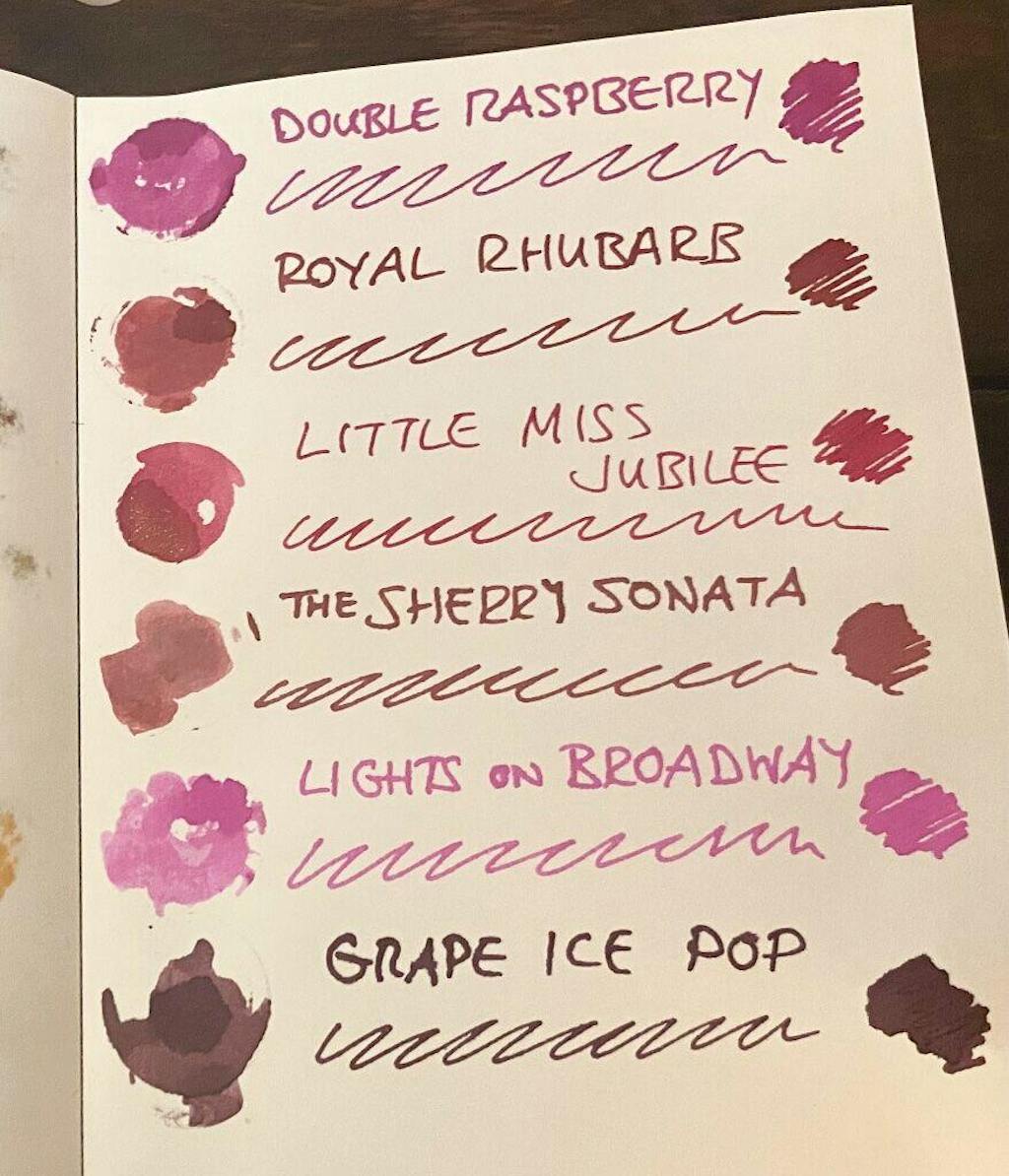 The ink in the bottles have been adjusted, to the best of our ability, to illustrate their appearance on paper. The ink swatches are the best representation of the colour.