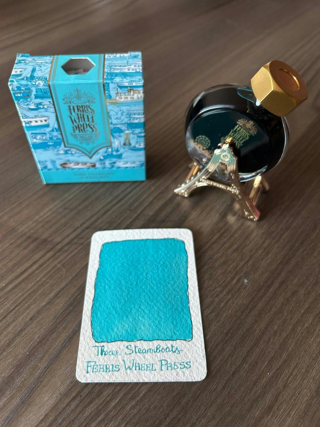The ink in the bottles have been adjusted, to the best of our ability, to illustrate their appearance on paper. The ink swatches are the best representation of the colour.