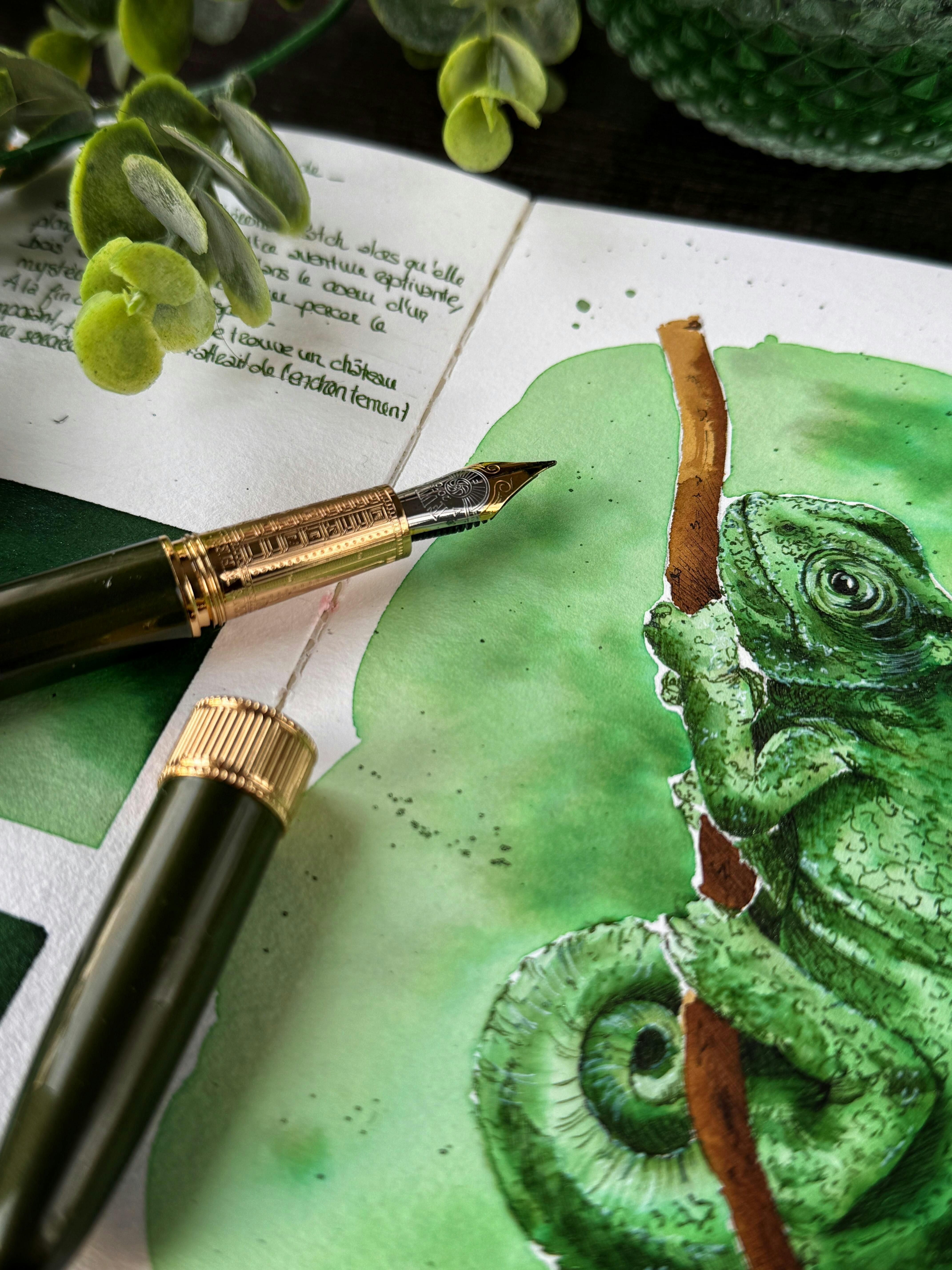 - Nib: Two-Tone Stainless Steel #6 in Fine/Medium, removable feeder
