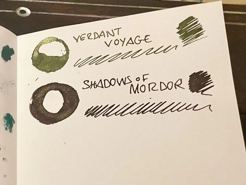 Warner Bros. Discovery license product – An exquisitely crafted fountain pen ink collection inspired by the rich landscapes and epic battles of Middle-earth. From the lush Verdant Voyage green, evoking the rolling hills of the Shire, to the solemn Dawning Silver, capturing the stormy skies over Helm’s Deep™, and the fiery Shadows of Mordor™, mirroring the molten depths of Mount Doom™—these shimmering inks are designed to bring your writing to life with depth and brilliance. Explore and collect all three!